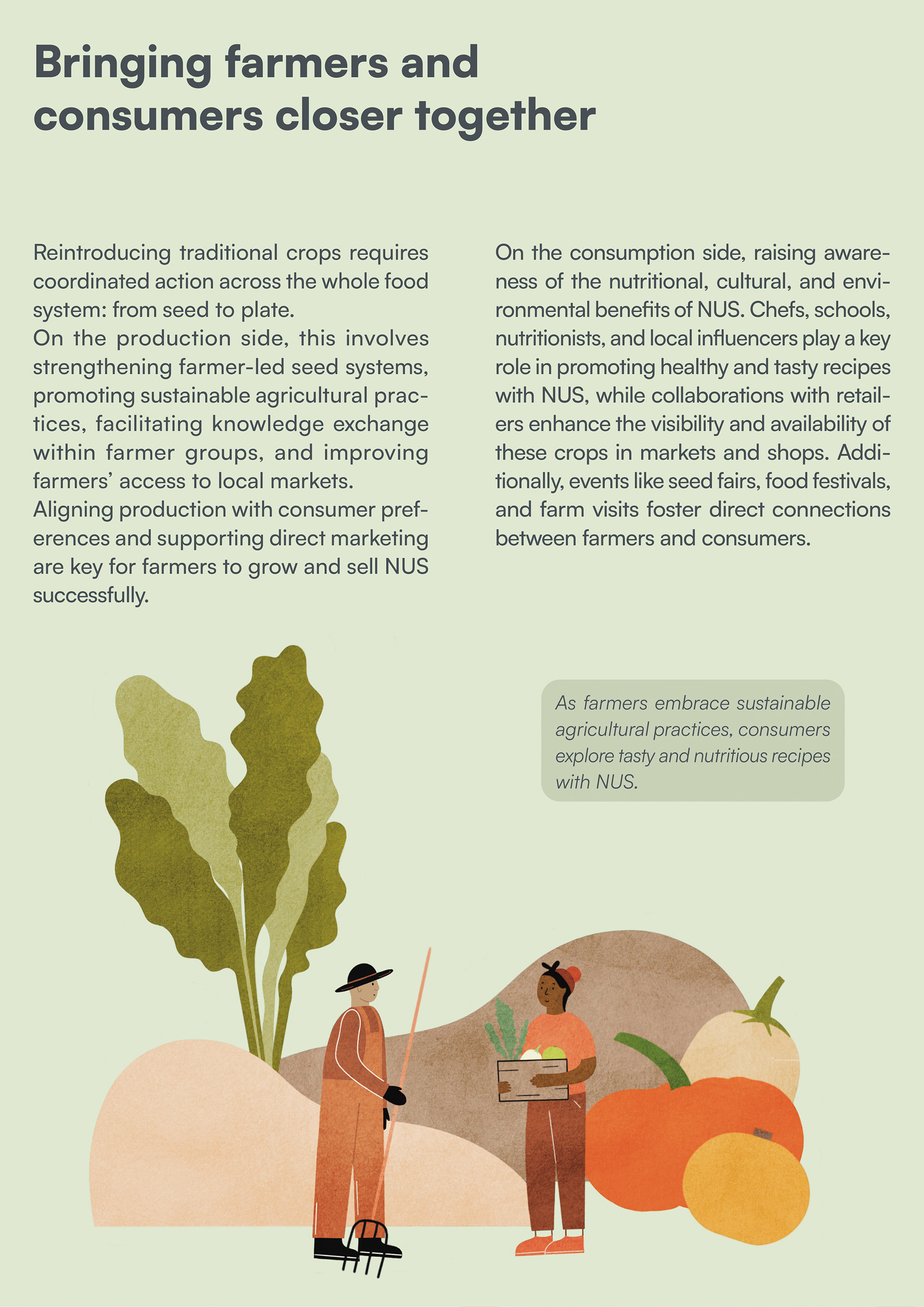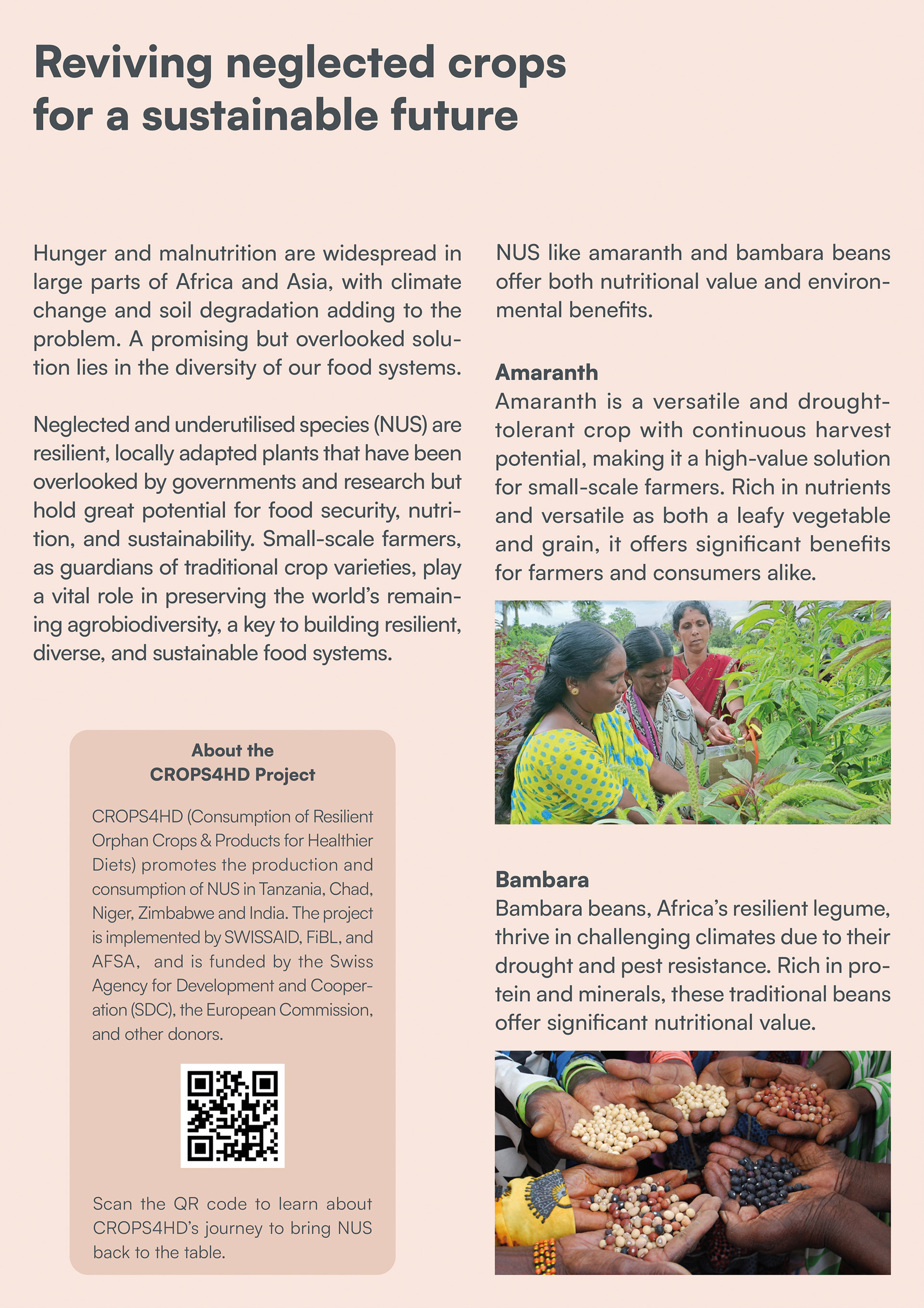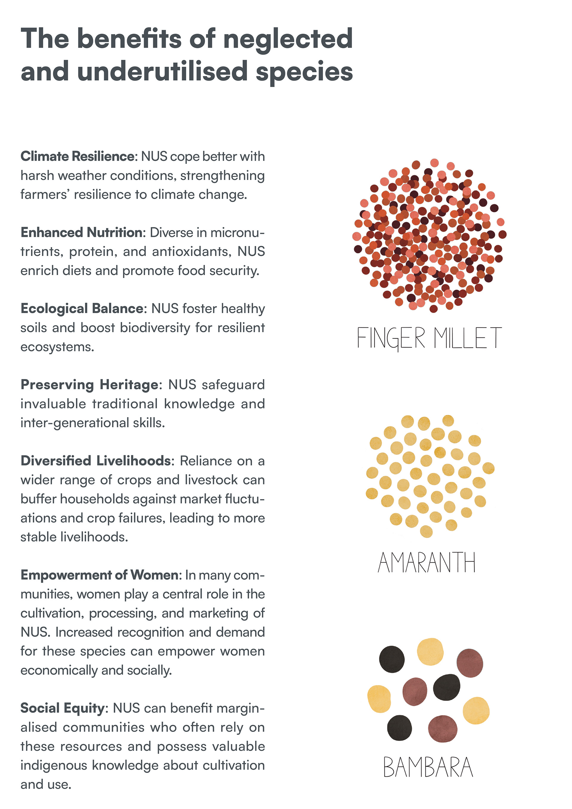 These success stories emerge at a critical moment. Since the industrial revolution, thousands of nutritious crops have been largely forgotten. Today, just three staples—wheat, rice, and maize—supply nearly half of the world’s calories. The journey to revive NUS is far from over.